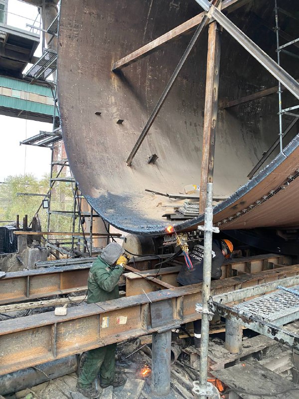 В связи с необходимостью замены сегмента корпуса, к которому крепится венцовая шестерня, также была приобретена обечайка длиной 3,2 метра и диметром 7 метров. Общий вес венца и обечайки -115 тонн.